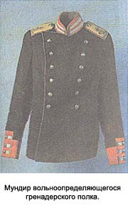 При парадной форме к нему полагались эполеты и шарф, при повседневной - галунные погоны и цветной суконный или кашемировый кушак.