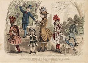 "... Есть еще прискорбное явление в воспитании детей. Это страсть родителей одевать еще маленьких детей роскошно; укрывать его блондами и кружевами, нашивать им, на каждую четверть года,разнородные костюмы, по последней моде иностранной, где и вкус национальный и климат другой.