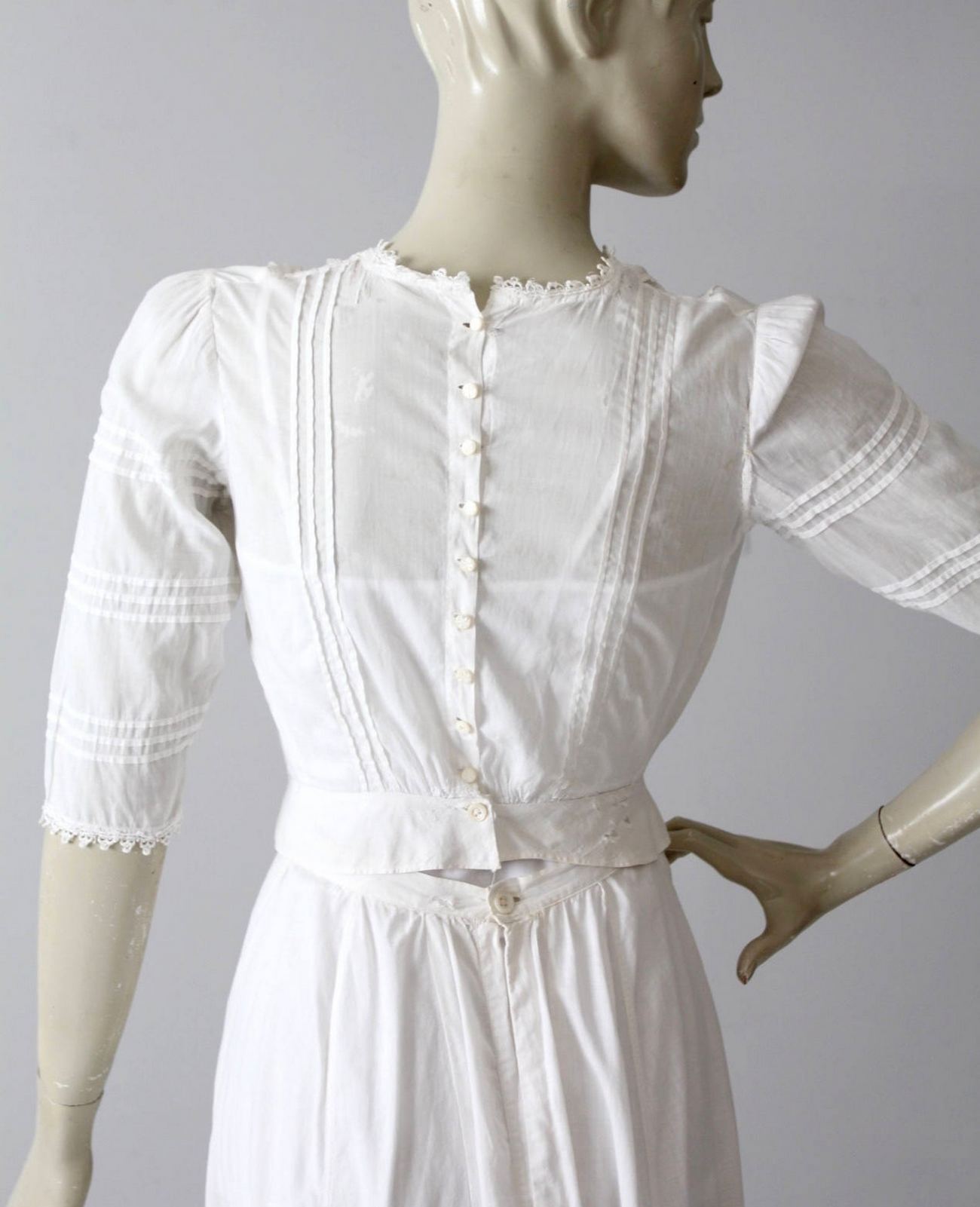 В начале XX века становится модным проводить больше времени на свежем воздухе: прогулки по паркам, на природе, в усадьбе. Платья для таких случаев шили из батиста и хлопка, чтобы не было жарко, где или основой или отделкой было кружево и вышивка, в большинстве своем - машинные. Под низ просвечивающихся платьев поддевали нижние. Многослойность одежды по-прежнему была еще присуще женскому костюму.